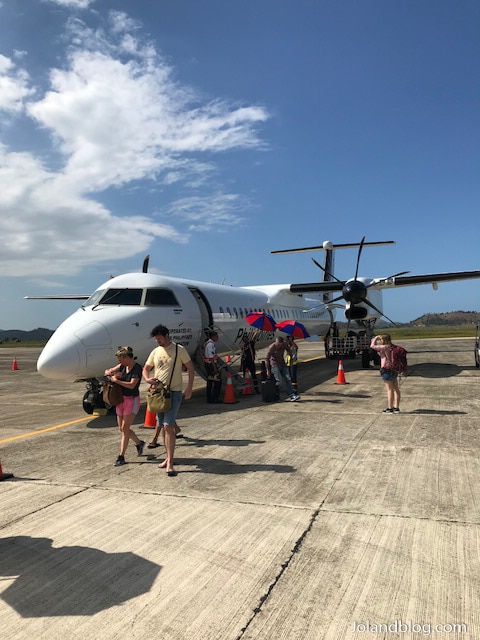 No dia seguinte, em Bohol, esperava-me uma viagem de ferry de 2 horas, às 08h da manhã, seguida por um voo de 1h30 de Cebu até Coron. A chuva continuava a cair, tanto em Bohol como em Cebu, e eu só esperava não ter a mesma sorte em Coron. O karma decidiu compensar-me: fui recebida em Coron com um sol radioso. Diria até um pouco radioso demais… Assim que saí do avião da Philippine Airlines, senti que tinha acabado de entrar num forno que me cozinhava lentamente. Com a bagagem já comigo, procuro um táxi à saída do pequeno aeroporto. Procura infrutífera já que dali só conseguiria sair de mini-bus juntamente com outros turistas com o mesmo destino. Sou a primeira a ser deixada no meu hotel, mais ou menos no início da estrada principal de Coron. Mal tenho tempo para pousar a mala porque tenho de seguir de imediato para os escritórios da TAO para um briefing antes do início da expedição que teria lugar no dia seguinte pelas 08h da manhã.