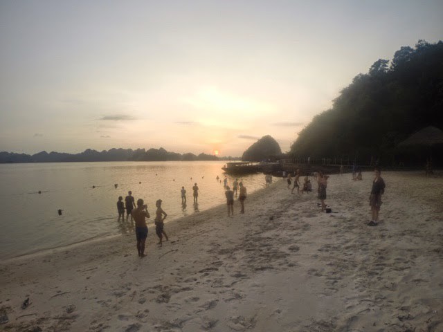 Uma visita a uma outra ilha onde para se ter acesso à melhor vista sobre Halong Bay era necessário subir 400 degraus, e 1 mergulho depois a ver um pôr-do-sol magnífico, e estávamos a caminho do barco onde nos esperava uma aula de culinária (fraquinha), um jantar (razoável), umas cervejas (pagas à parte e beeeem caras tendo em conta os preços normais aqui), boa conversa no terraço do barco e (espero eu) uma boa noite de sono.