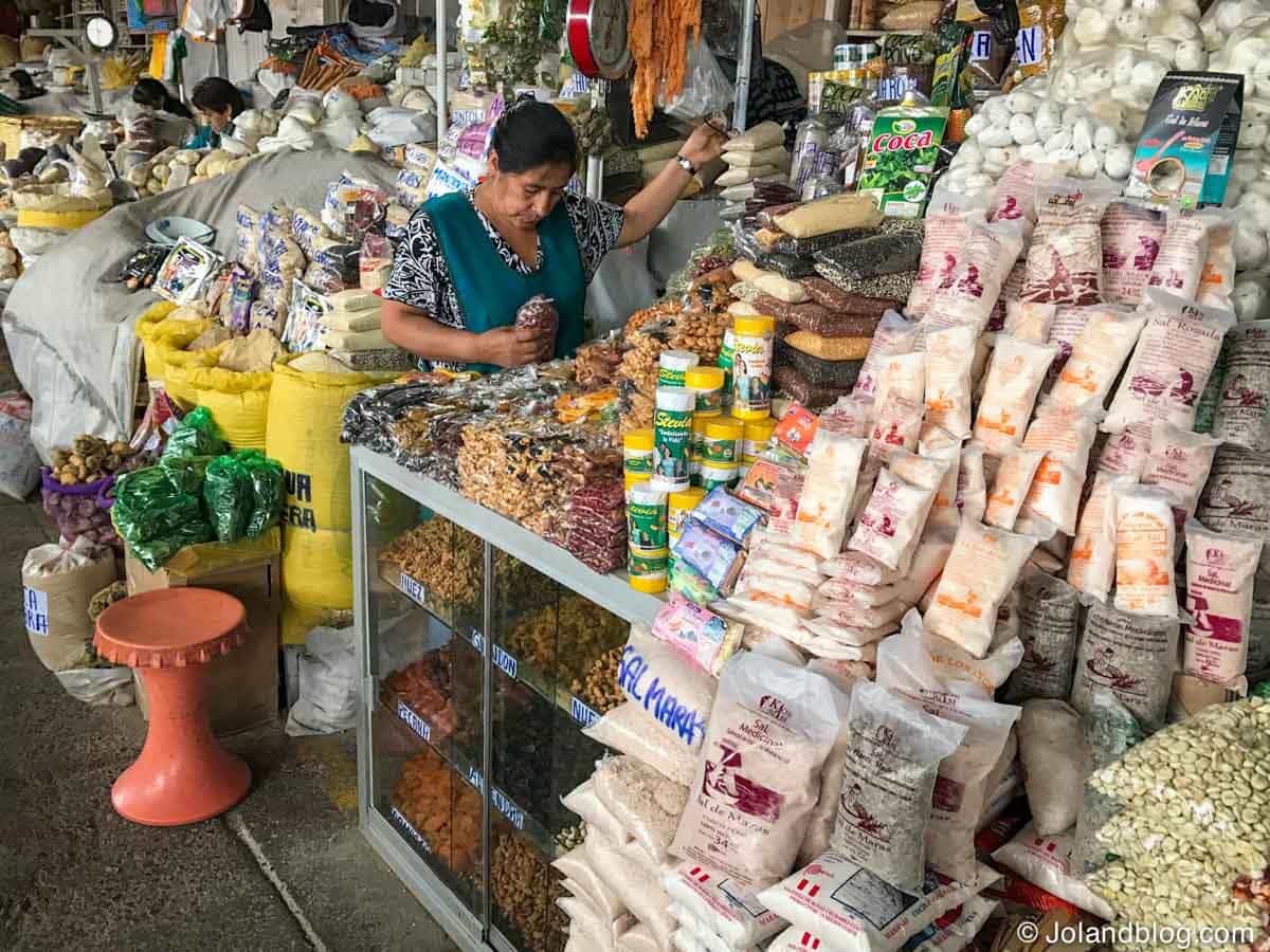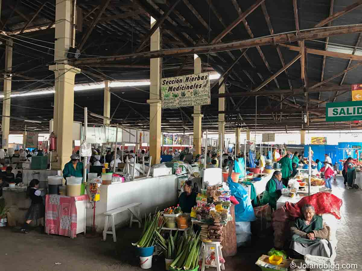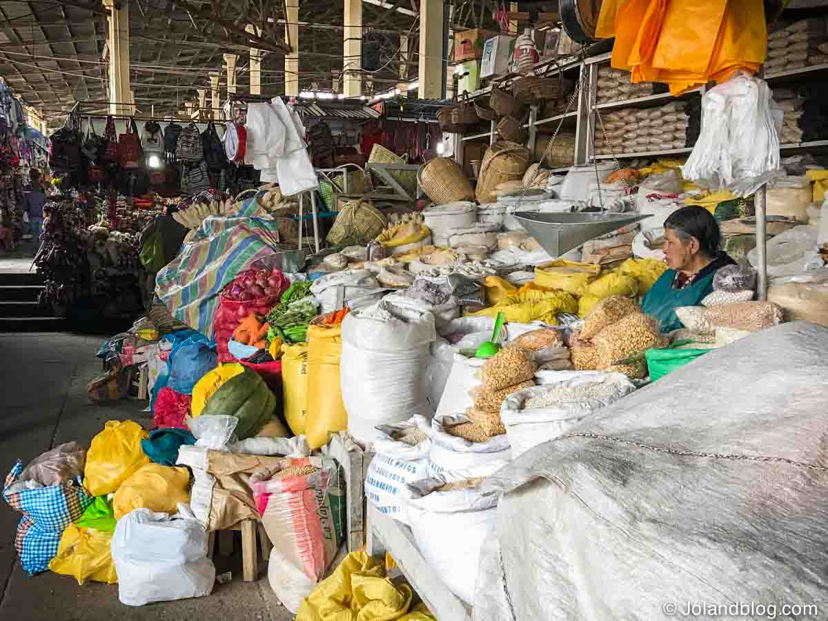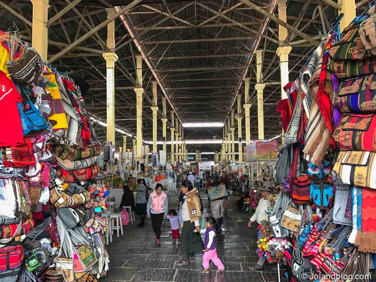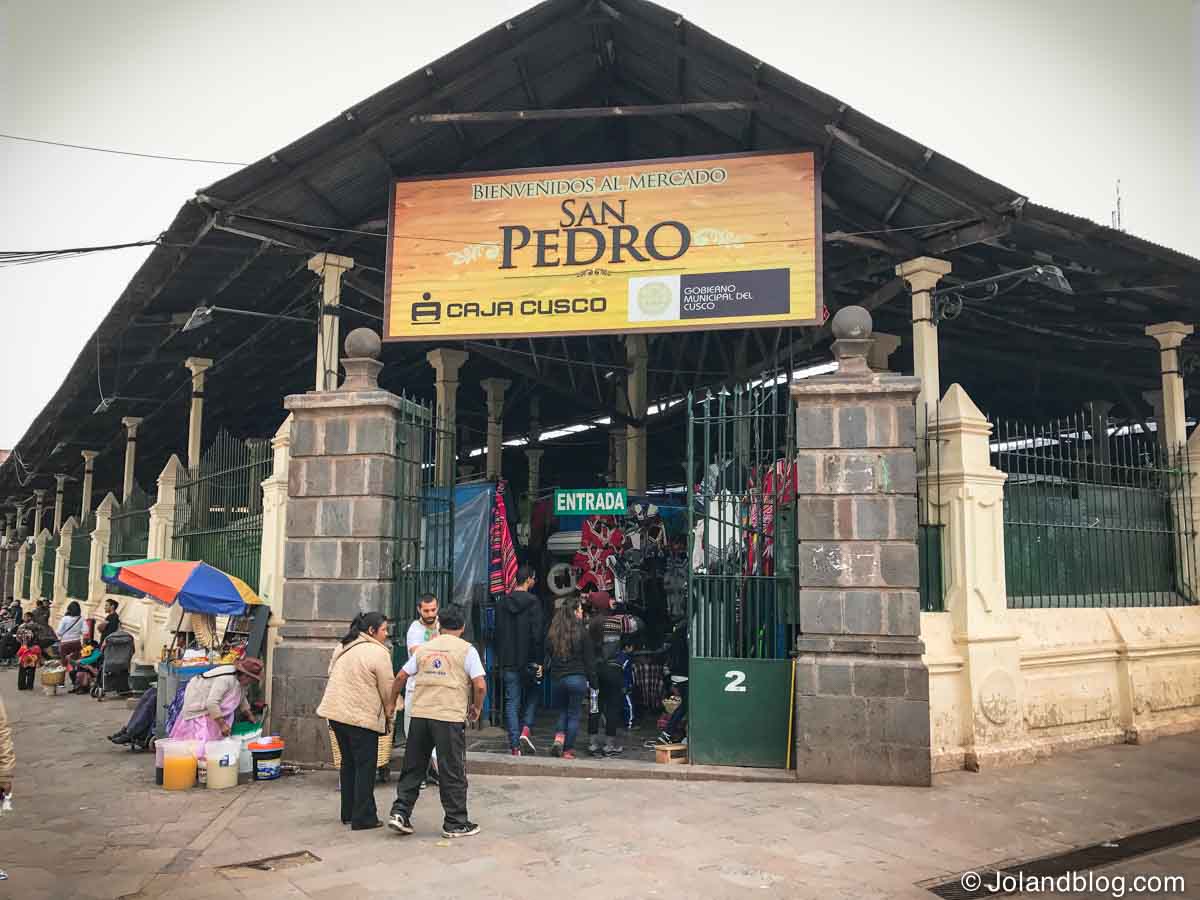 No meu último dia na cidade decidi explorar o seu maior mercado: o mercado de San Pedro. Este mercado é uma mistura de atração turística e de mercado local. É um espaço bastante grande ainda, onde tanto se encontram bancas e mais bancas de souvenirs, roupas tradicionais (praticamente 3 em 5 turistas que viam em Cusco tinham vestida uma camisola ou casaco tradicional da zona, eu incluída…), gorros peruanos, etc, como bancas que vendem carne, peixe, legumes, queijo, entre outros. Adoro mercados. Adoro ver toda aquela palete de cores, de sentir a textura e o cheiro de toda aquela mistura variada de produtos, de observar vendedores e clientes a discutir preços e a qualidade dos produtos… Ainda me senti tentada a beber um sumo e a trincar qualquer coisa numa das muitas bancas que existiam ao longo do mercado, mas tendo em conta a minha experiência de exploração do sistema de saúde Peruano logo no meu 2º dia no país, achei melhor deixar passar a oportunidade. Só me faltava mais uma intoxicação alimentar para juntar à dificuldade em respirar. Era pacote completo!