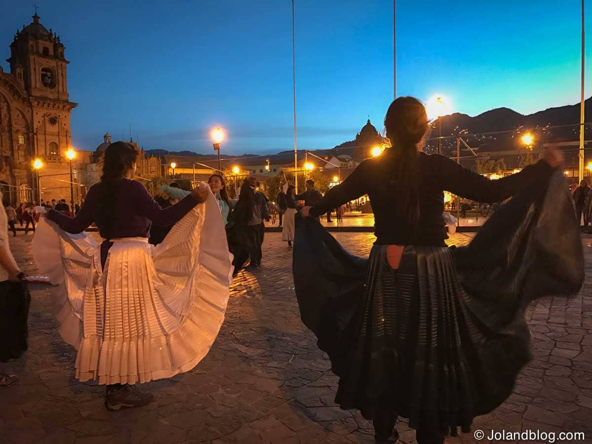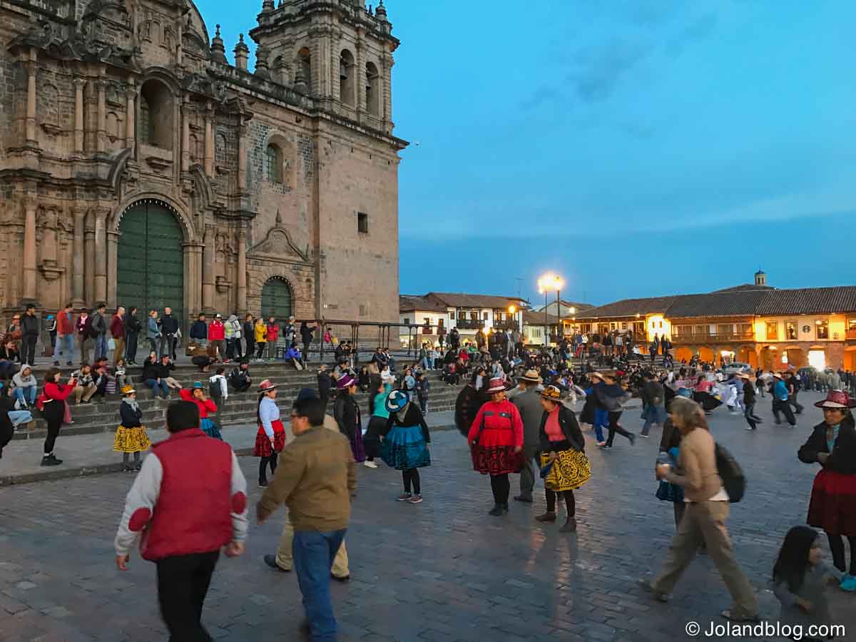 Na 5ª feira, ao passear ao fim da tarde pela Plaza de Armas, deparo-me com os ensaios de uma demonstração de danças tradicionais Peruanas que decorreriam no dia seguinte naquele mesmo lugar. Sento-me nas escadas da Catedral e acabo por me deixar ficar a assistir. Grupos grandes de 20 a 30 pessoas ensaiam as suas coreografias vezes e vezes sem conta, semi-vestidos com as roupas que usariam no dia do evento.Tiro algumas fotos, assisto ao repetir interminável das danças e ao progresso demonstrado pelos seus participantes até me cansar e parto em busca de uma merecida refeição.