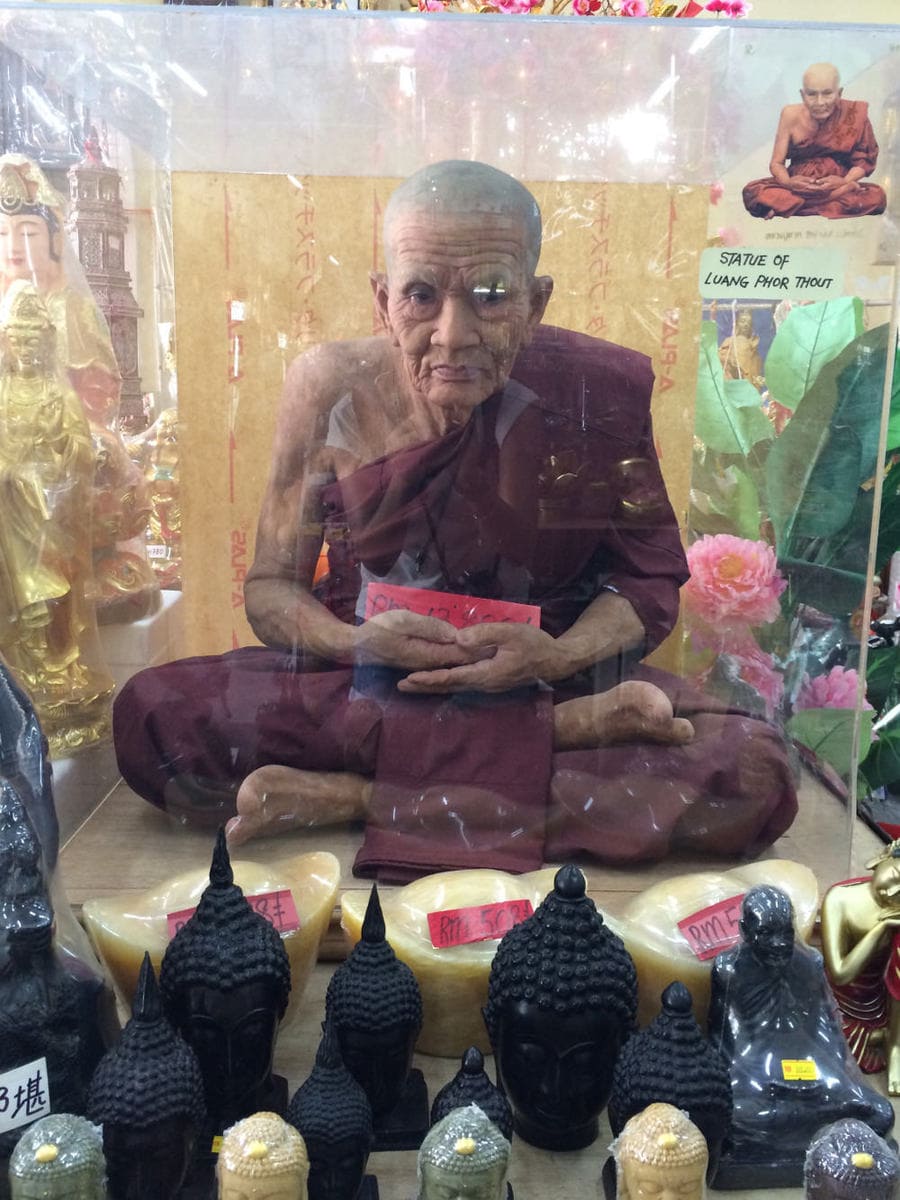 Ao sair do templo vejo uma barraquinha a vender fruta. Vou até lá para ver se como alguma coisa. Entretanto chega um homem com os seus 60/70 anos, acompanhado por alguns monges, que me pergunta de imediato de onde sou. “Portugal” respondo eu. “Aaaah! Poooortugal!”. Faz questão de ser ele a oferecer-me um saquinho de fruta e uma gelatina. “É por minha conta! Eu insisto!”. Ainda oferece uma gelatina à mendiga deitada no chão à nossa frente. Pelos vistos o senhor é o “chairman” do templo. Pergunta-me se estou a viajar sozinha. “Oooh, que corajosa!”. Durante a conversa ainda me compra alguns euros que eu tinha na carteira para oferecer à neta. O que ele quer mesmo são escudos mas isso é coisa que não costumo trazer na carteira. Os ringgits que me dá não são suficientes para cobrir o valor que entretanto lhe passei para a mão, mas deixo passar. É pelo saquinho de fruta e pela gelatina 😉