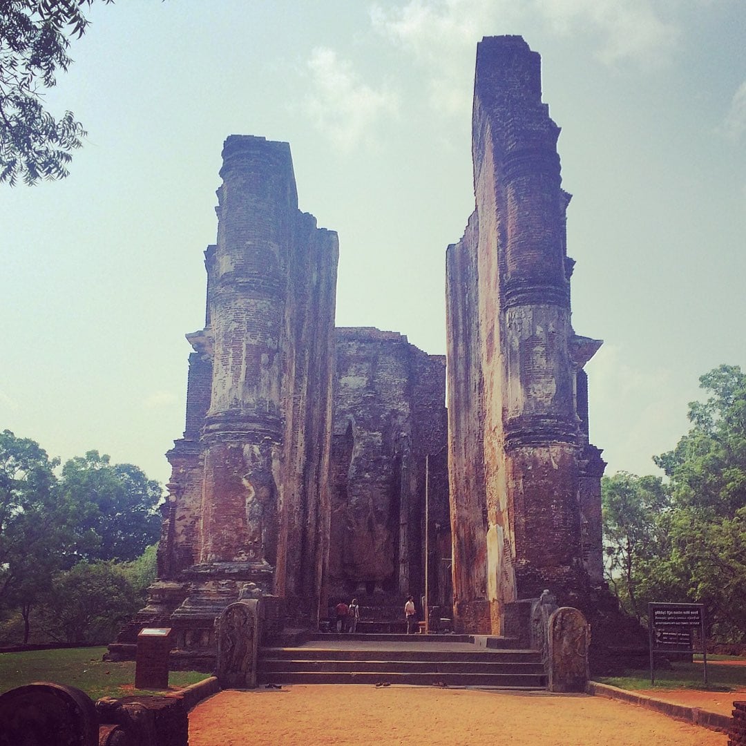 Dambulla foi uma óptima base de exploração de Sigiryia e Polonnarwua. Mas de Sigiryia já vos falei na crónica anterior. No dia seguinte, partimos novamente de tuk-tuk para Polonnarwua, mas a viagem desta vez foi bem mais longa: cerca de 60kms de estrada desde Dambulla. É uma cidade repleta de ruínas milenares. São cerca de 5kms a percorrer, todos preenchidos com monumentos interessantíssimos. A melhor forma de explorá-la é, na minha opinião, de tuk tuk. Havia quem o fizesse de bicicleta, mas eu não me atreveria a pedalar nem 1km sob aquele sol abrasador. Confesso que quase no final do percurso já estava um pouco saturada. O cansaço, a fome e o calor talvez tenham sido os grandes culpados. A certa altura já estava um bocado farta de andar a saltar de monumento em monumento.