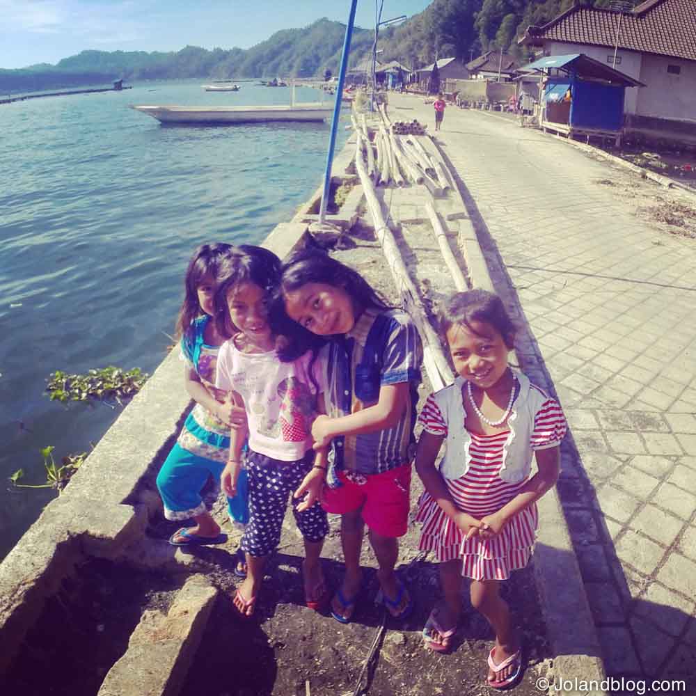Almoçámos à beira da estrada e partimos rumo ao Lake Batur, junto ao vulcão Batur. A temperatura desce de forma vertiginosa e temos de parar pelo caminho para que eu me possa enrolar em sarongs. Chegamos ao lago e decidimos ir em busca de mais um templo. Passámos por aldeias recônditas, circulámos em estradas a pique e quase em terra batida, e finalmente chegámos ao fim da estrada. Não encontrámos nenhum templo, mas mais uma aldeia, nos confins do lago, onde dezenas de crianças brincam junto à água e correm na nossa direcção assim que nos veem. Somos os únicos “white people” ali, e tenho dúvidas que muitos tenham feito aquele caminho. Ouvimos falar de um cemitério conhecido pela tradição de não enterrarem os seus mortos mas sim de os deixarem por cima da terra. Os locais dizem-nos que os corpos não deitam qualquer odor e afirmam que se deve à grande árvore sagrada que se encontra no cemitério. Fica claro para os dois que esse tem de ser o próximo destino! No entanto dizem-nos que só é acessível por barco. Cara a viagem… Ficamos com a impressão que deverá ser possível chegarmos lá por terra, pelo que o Cyprian começa a tentar desbravar caminho. Pergunta a um agricultor o caminho e ele diz que sim é possível mas demora cerca de 1 hora a la chegar. Não temos tempo. São quase 17h e temos de devolver a mota em Ubud no máximo às 18h!