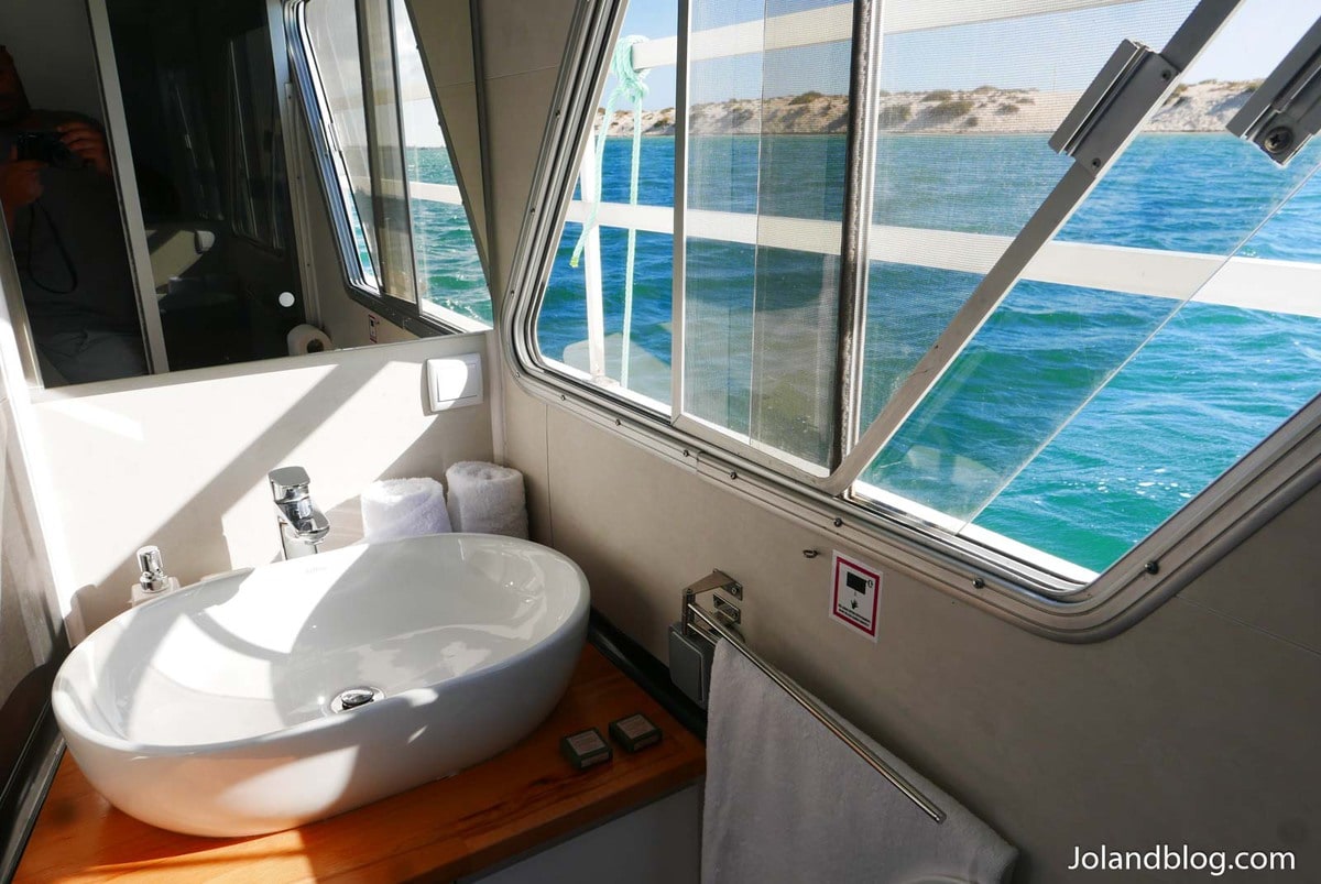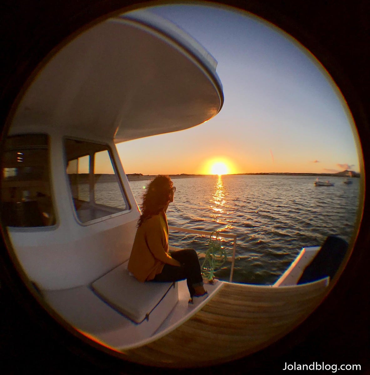 Já tinha visto fotos e vídeos dos barcos-casa dos Passeios Ria Formosa antes, mas na verdade, acho que só me apercebi no que me estava a meter quando lá cheguei. Por volta das 12h de sábado saía num barco-táxi da mesma empresa, da Fuzeta, perto de Tavira, numa viagem de cerca de 10 minutos até ao barco-casa onde ficaria alojada nessa noite. Ao chegar ao barco, “apoitado” em plena Ria Formosa, o meu queixo caiu de forma instantânea e os “uaus” não paravam de me sair da boca.