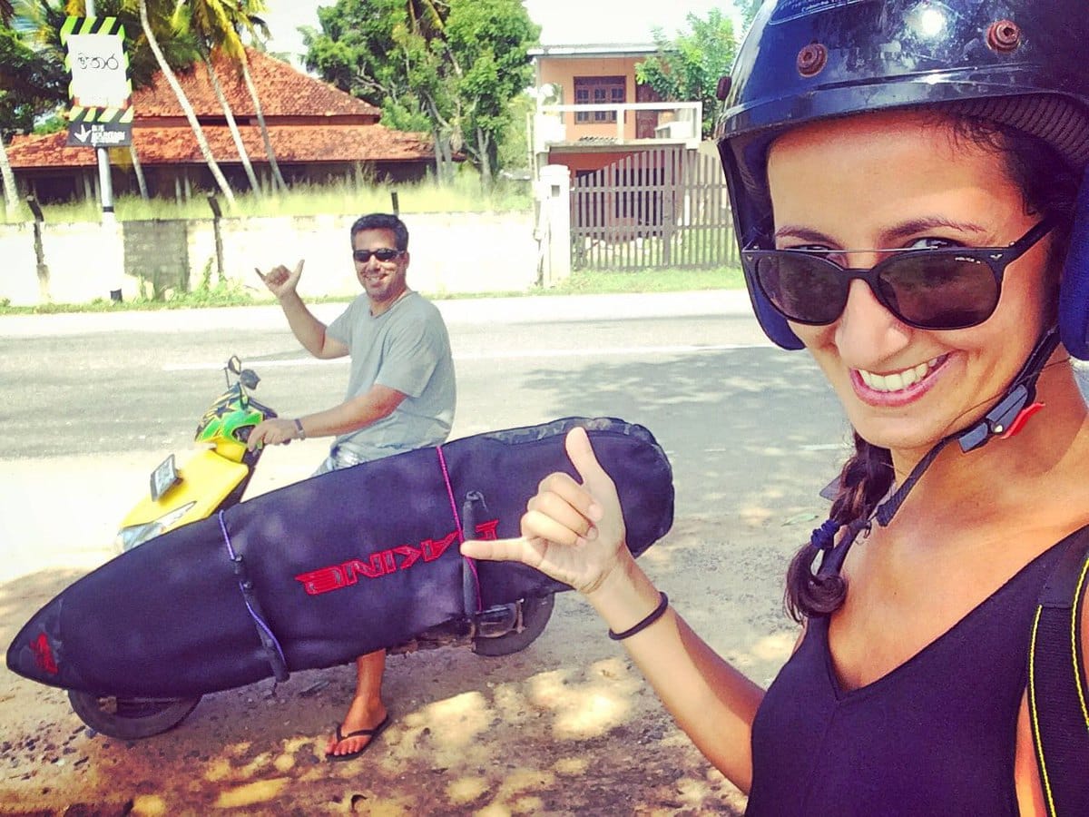 Passados 2 dias decidimos rumar em direcção a Hikkaduwa: um dos destinos de praia e surf mais populares do Sri Lanka. Irmos de autocarro estava fora de questão, já que seria impossível transportarmos 2 malas e uma prancha de surf dentro de um autocarro atolado de gente. A única opção viável seria o comboio. Despedimo-nos do Sumeda, metemos-nos num tuk-tuk rumo à estação de comboios de Weligama e em pouco tempo estávamos dentro de um comboio em direcção a Hikkaduwa.